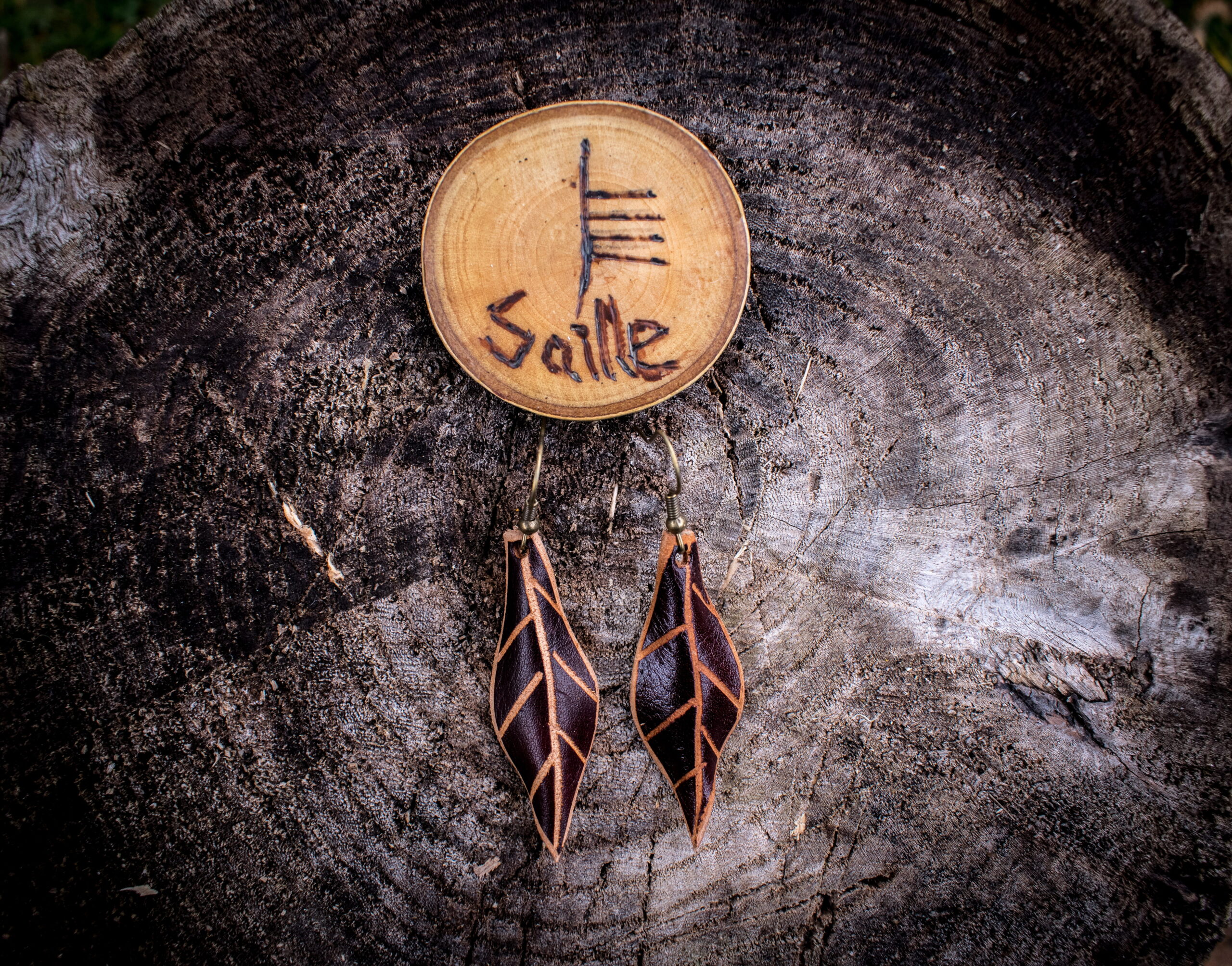 Pour créer ces boucles, je m’inspire des Ogham celtiques (l’alphabet secret des druides). À chaque arbre correspond un signe et une symbolique. Le saule (Saille) est l’arbre de la lune. Il répresente l’intuition, la vision nocturne et la capacité à voir au-delà des apparences, la sensibilité et la féminité.